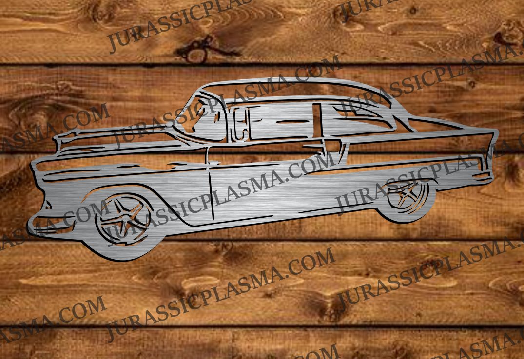 This is a digital file for a 1955 CHEV CAR 9 X 22 2026 DIGITAL DOWNLOAD SVG DXF JPEG used for CNC Plasma, Laser, waterjet, or vinyl cutters, including the Cricut. The dimensions are typically in the file name. Most of our files are CNC plasma cut using fine cut consumables for fine details. Vinyl use may require editing for the size needed.