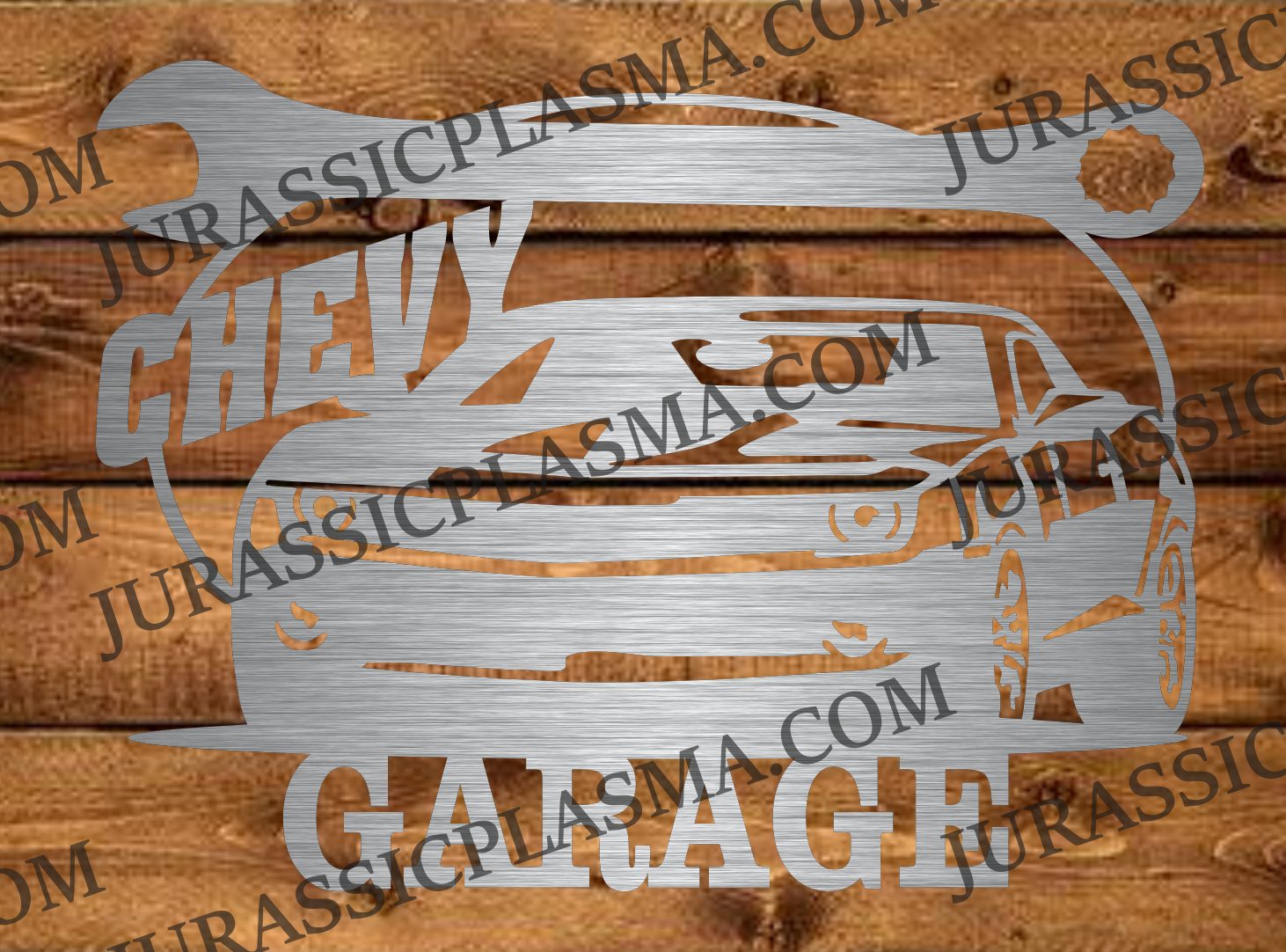 This is a digital file for a CHEVY GARAGE WITH CAMARO 19 X 14 2026 DIGITAL DOWNLOAD SVG DXF JPEG used for CNC Plasma, Laser, waterjet, or vinyl cutters, including the Cricut. The dimensions are typically in the file name. Most of our files are CNC plasma cut using fine cut consumables for fine details. Vinyl use may require editing for the size needed.
