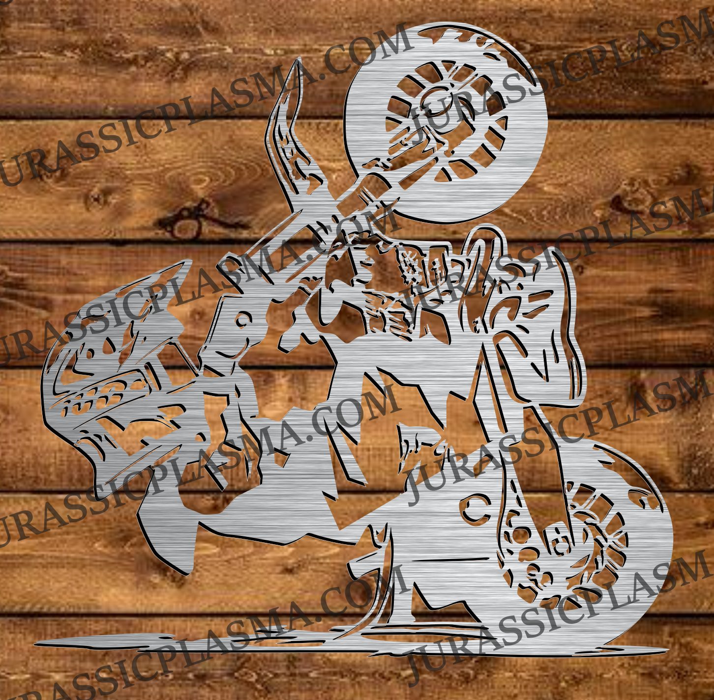 This is a digital file for a FMX WHEELIE KID 21 X 21 2026 DIGITAL DOWNLOAD SVG DXF JPEG used for CNC Plasma, Laser, waterjet, or vinyl cutters, including the Cricut. The dimensions are typically in the file name. Most of our files are CNC plasma-cut using fine-cut consumables for fine details. Vinyl use may require editing to match the required size.