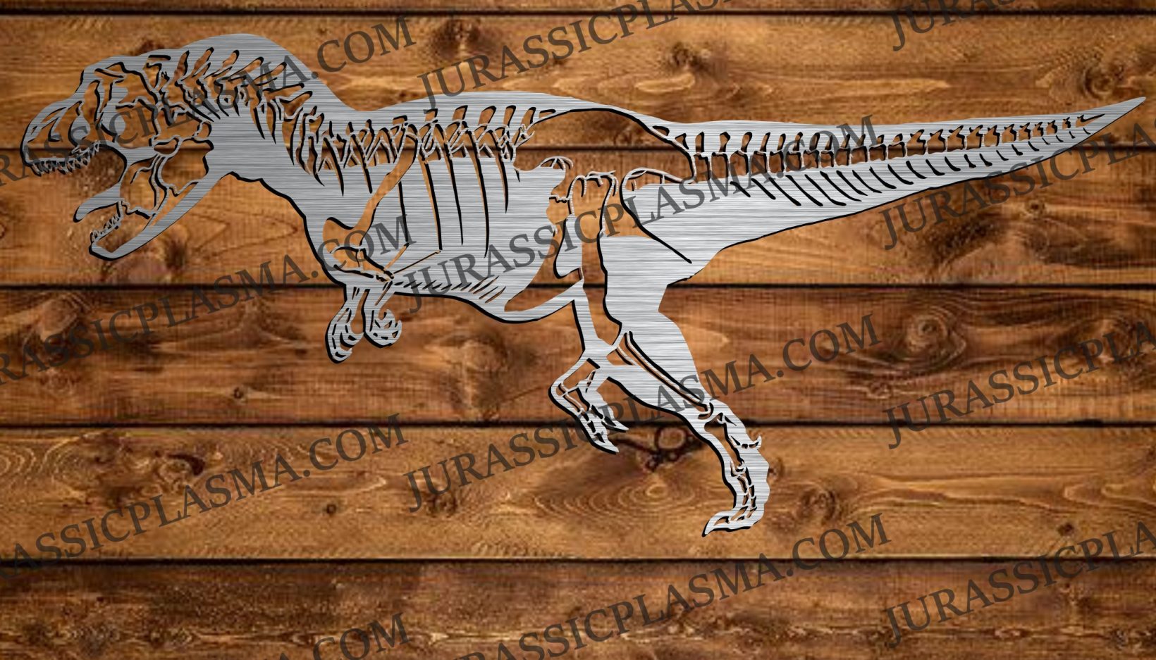 This is a digital file for a T REX SKELETON FOSSIL 16 X 34 2026 DIGITAL DOWNLOAD SVG DXF JPEG used for CNC Plasma, Laser, waterjet, or vinyl cutters, including the Cricut. The dimensions are typically in the file name. Most of our files are CNC plasma-cut using fine-cut consumables for fine details. Vinyl use may require editing to match the required size.