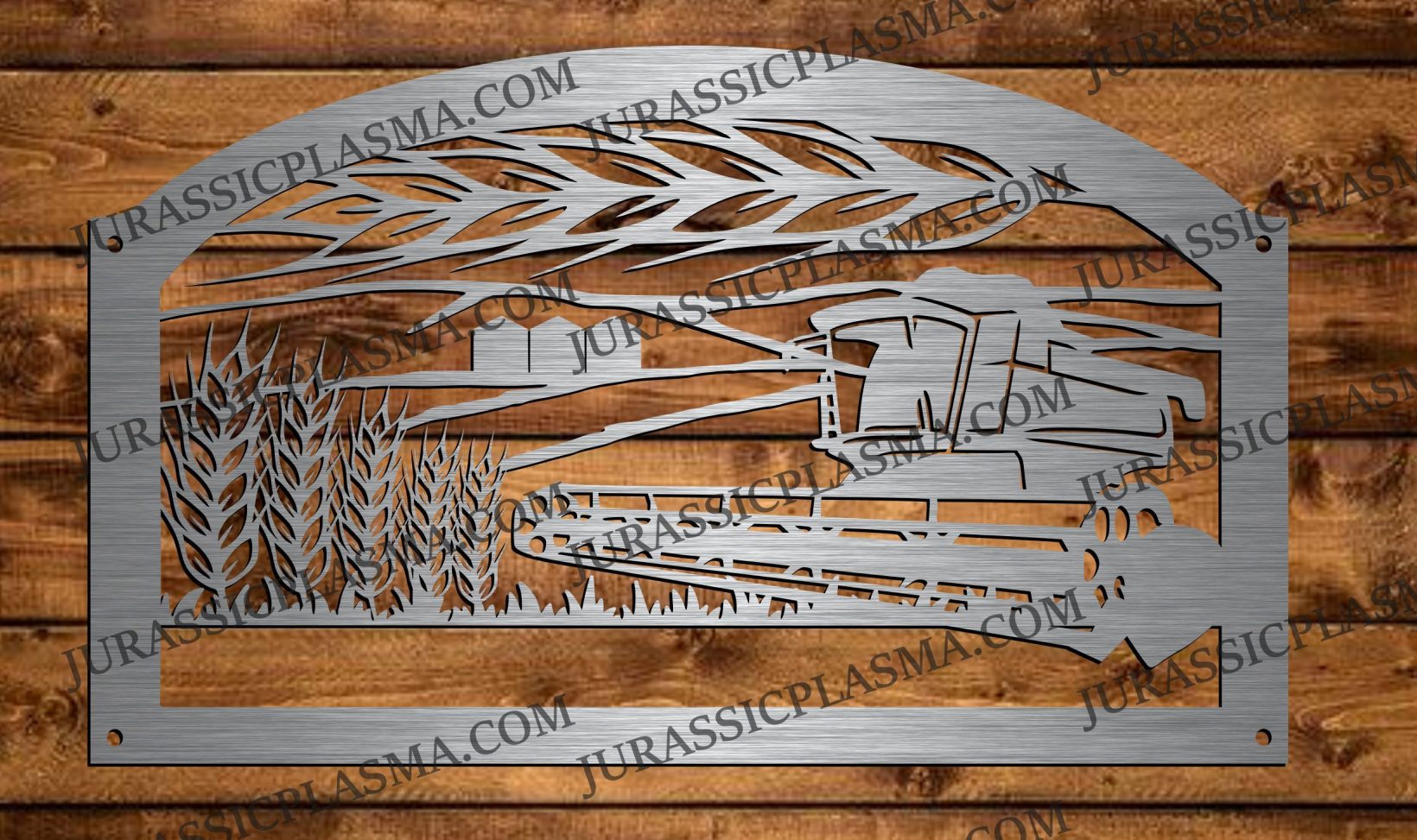 This is a digital file for a WHEAT FARM COMBINE BINS ADD NAME FARM SIGN 21 X 34 2026 DIGITAL DOWNLOAD SVG DXF JPEG used for CNC Plasma, Laser, waterjet, or vinyl cutters, including the Cricut. The dimensions are typically in the file name. Most of our files are CNC plasma-cut using fine-cut consumables for fine details. Vinyl use may require editing to match the required size.